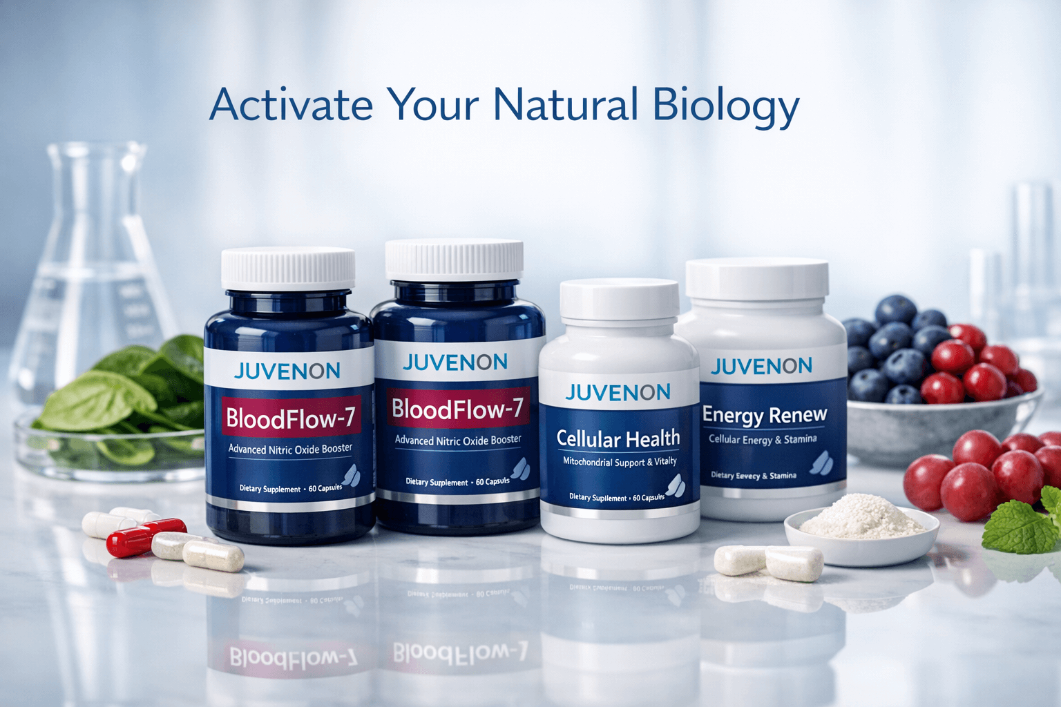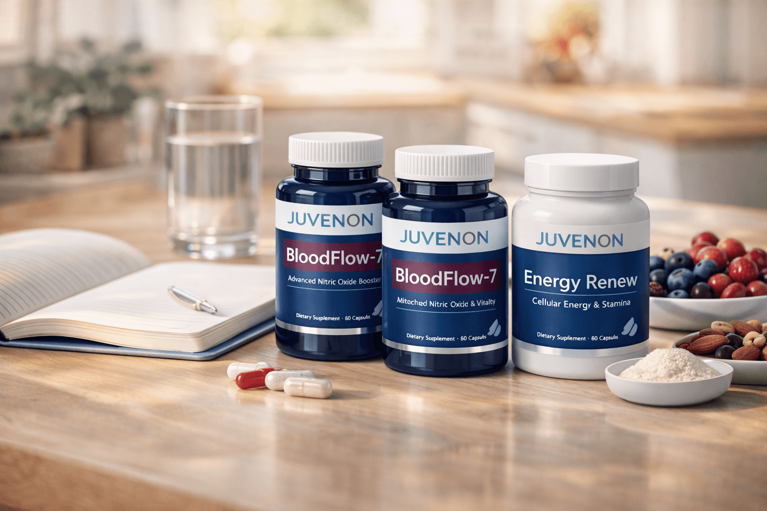 - Popular Juvenon products like BloodFlow-7