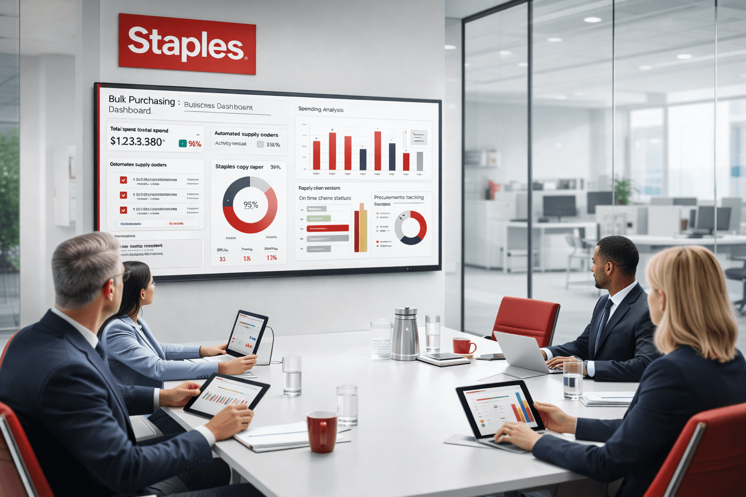 Businesses benefit from Staples Business Advantage, which helps manage supply purchasing.